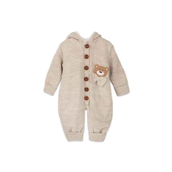 Комбинезон капюшон с ушками и аппликацией медвежонок бежевый