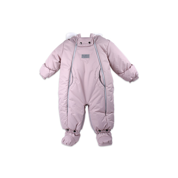 Опушка на капюшоне защитит малыша от ветра и непогоды, а два замка-молнии облегчат процесс одевания и снятия комбинезона. Резинки на рукавах и закрытые ножки еще больше защитят малыша от холода.
