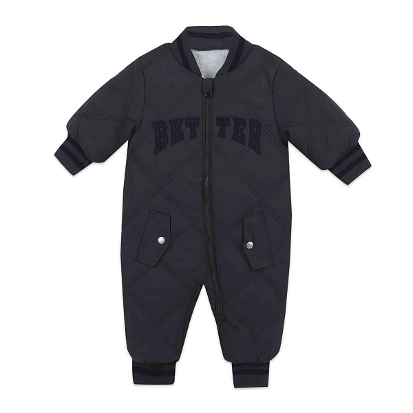 Верхний материал комбинезона — полиэстер. Эта ткань отличается прочностью и легкостью. Она устойчива к загрязнениям и ветру. Подкладка с ворсистой текстурой создает дополнительное ощущение тепла. Стеганая конструкция удерживает наполнитель на месте. Комбинезон подходит для прогулок в межсезонье.