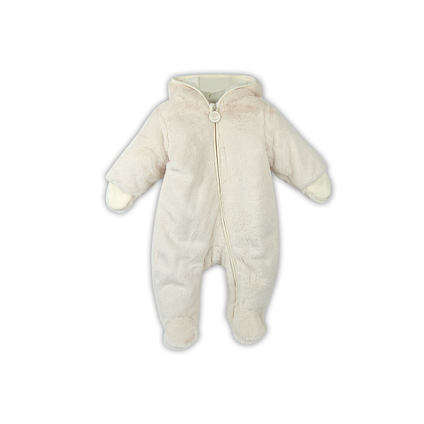 Пушистый демисезонный комбинезон для детей ясельного возраста комфортен тем, что полностью защищает от холодного воздуха все части тела. Материал верхнего слоя пошит из полиэстера, а подкладка из натурального хлопка. Материалы мягкие и приятные на ощупь, они хорошо пропускают воздух и дарят комфорт. Ступни ног закрыты, рукава дополнены вшитыми варежками. Глубокий капюшон надежно прикрывает уши, подбородок, верхнюю часть головы и затылок. На капюшоне сверху декоративные тканевые медвежьи ушки. Замок-молния проходит наискось от подбородка до левой ступни, поэтому частое переодевание не доставит родителям хлопот. Рекомендовано для детей ясельного возраста.
