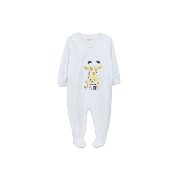 Комбинезон Lanson Kids I love my mommy со ступней велюровый с жирафом белый