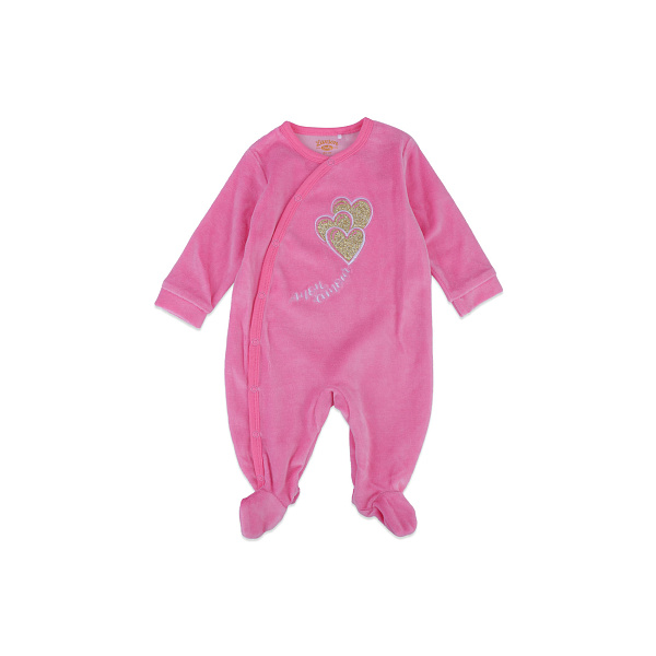 Цвет: нежно-розовый, на лицевой стороне аппликация в виде золотистых сердечек. В комбинезоне ребенок может свободно двигаться, он удобен также и для сна. Широкие манжеты ускоряют процесс одевания младенца. В таком комбинезоне малышу будет тепло и уютно.