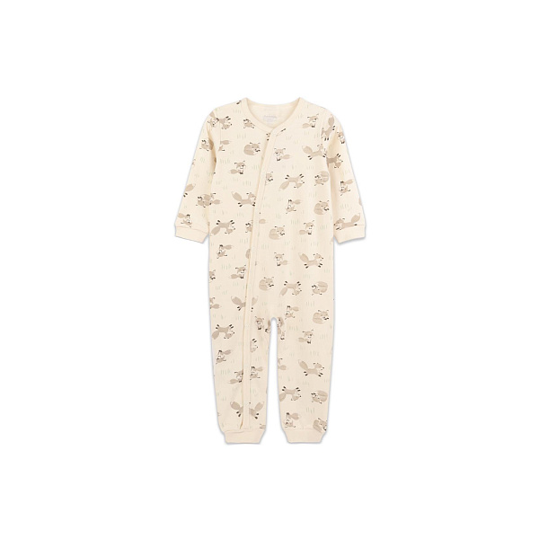 В таком комбинезоне ребенку будет тепло и комфортно. Изделие не стесняет движений и не мешает активно познавать внешний мир. Фоновый цвет – розовый, по всей поверхности нанесен принт с изображениями лисичек.