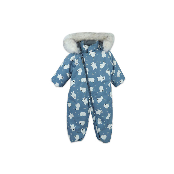 Утепленный зимний комбинезон синего цвета с принтом северных медведей пошит для детей ясельного возраста. Комбинезон закрытого типа, он бережно согреет ноги и руки малыша. Верх изготовлен полиэстера – материал обеспечивает естественную вентиляцию, приятно прилегает к телу и хорошо сохраняет форму. Флисовая подкладка и утеплитель из синтепона эффективно сохраняет тепло. Куртка имеет влагоотталкивающую пропитку.
