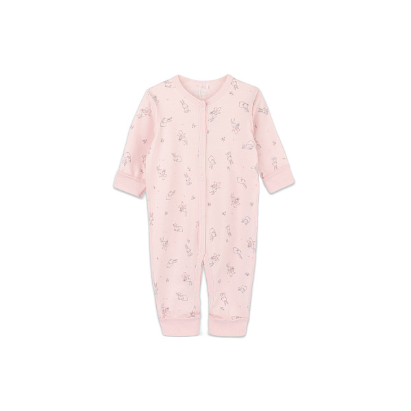 Это очаровательное боди из 100% хлопка с манжетами станет отличным выбором для маленькой девочки. Кнопки обеспечивают удобство при одевании и раздевании ребенка. Боди выполнено в приятном розовом цвете, украшено рисунками зайчиков.