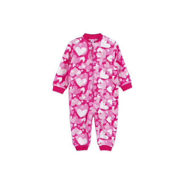 Трикотажный комбинезон предназначен для девочек ясельного возраста. Это демисезонная одежда, не рассчитанная на сильные морозы, но защищающая малыша от ветра и холода в оттепель осенью и весной. Комбинезон с длинными рукавами, круглая горловина с маленьким трикотажным воротником. Штаны и рукава заканчиваются узкими мягкими манжетами. Застегивается комбинезон «молнией» с закрытой планкой. Такая конструкция застежки дополнительно сохраняет от ветра. Комбинезон отличается ярким цветовым оформлением: узор с чередованием красных и белых фигур делает одежду красивой и изящной. В основе ткани использован полиэстер, ох бережно сохраняет тепло и приятно прилегает к телу.