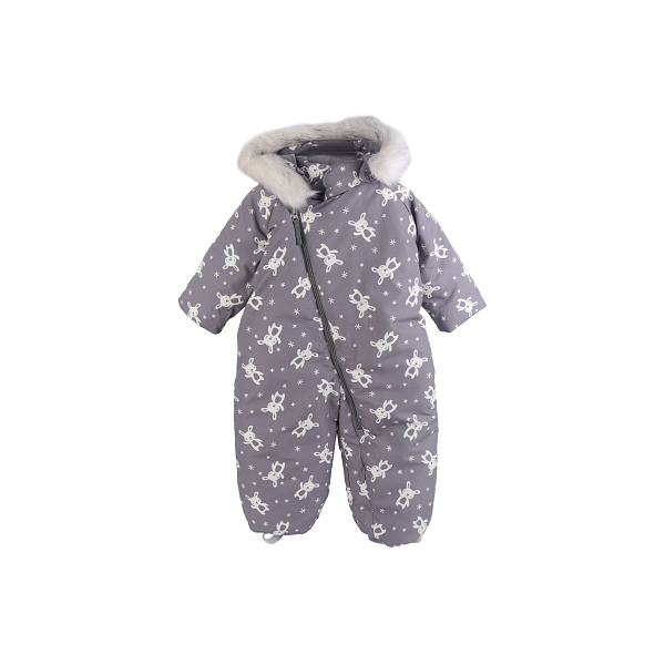 Комбинезон Lanson Kids принт зайчата и снежинки серый