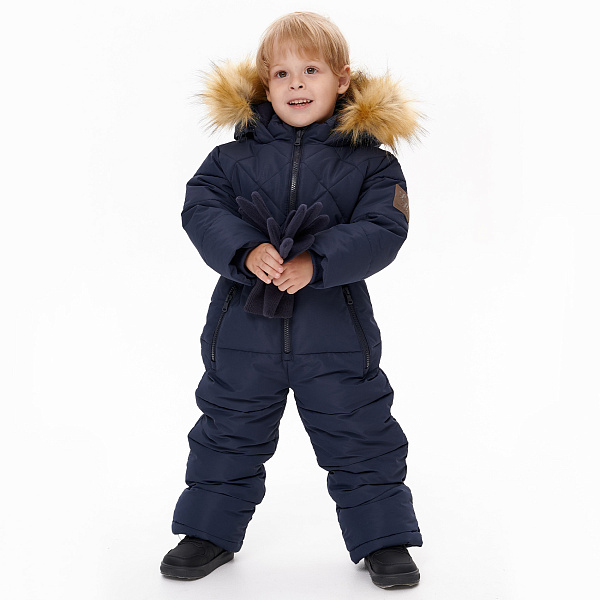 Темно-синий зимний комбинезон для мальчика идеален для морозной погоды. Комбинезон не стесняет движения и не мешает подвижному малышу играть на свежем воздухе. Комбинезон дарит тепло и уют ребенку даже в самые холодные дни, а продуманная конструкция и качественные материалы делают его долговечным и практичным решением на всю зиму. Комбинезон состоит из двух слоев полиэстера, между которыми располагается теплый наполнитель. Материал защищает ребенка от влаги и холодного ветра.