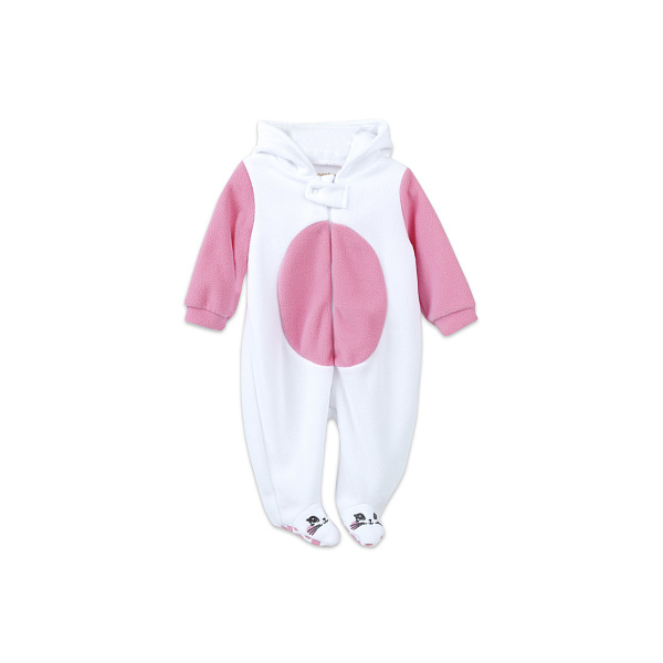 Комбинезон Lanson Kids с капюшоном флисовый с мордочкой и ушками бело-розовый