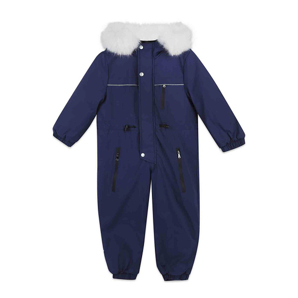 Комбинезон Lanson Kids окрашен в насыщенный синий цвет. Модель имеет спортивный силуэт с резинкой на поясе. Капюшон дополнен мягкой опушкой. На спине и рукавах расположены светоотражающие ленты для заметности в темноте. Центральная молния оснащена ветрозащитным клапаном на кнопках. В комбинезоне есть два кармана сзади и три врезных кармана на молнии спереди.