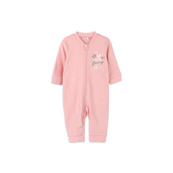 Комбинезон Lanson Kids с цветочками и надписью Little bunny розовый