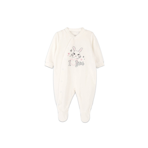 Комбинезон со ступней из мягкого велюра станет базовым элементом гардероба новорожденной девочки. Изделие полностью соответствует всем потребностям малышки, имеет удобную ассиметричную застежку в виде кнопок. Такое решение максимально упрощает процедуру переодевания и замену подгузника. Оригинальный крой гарантирует свободу движений. Изделие бережно облегает тело крохи, не сбивается в складки, не доставляет неудобств.