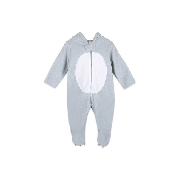 Для улучшения фиксации одежды на теле в районе горловины есть кнопка. Нижняя часть конструкции комбинезона включает в себя специальные элементы для ступней (в форме лапок). Они надежно защищают ноги крохи во время передвижений от травмирования.