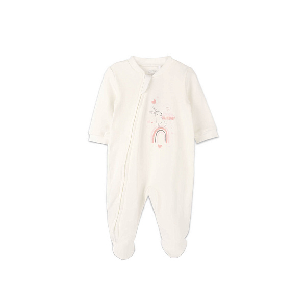 Комбинезон Lanson Kids со ступней с рисунком зайчонок на радуге белый