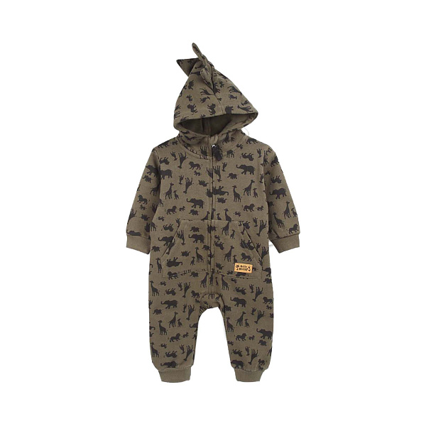 Комбинезон изготовлен из 100% хлопка. Натуральная ткань безопасна для детей. Хлопок не вызывает аллергию, позволяет коже дышать и не выделяет токсичных веществ. Волокна хлопка сохраняют тепло. В хлопковой одежде ребенок не замерзнет. Комбинезон застегивается длинной молнией, которая тянется от горловины до ластовицы. Утепленный комбинезон для мальчика можно надевать на прогулку, когда прохладно. Удобно носить комбинезон под зимней курткой, если нужен дополнительный слой одежды. В слитном костюме верх не задирается на спину, а штанишки не сползают. В капюшон вшит забавный декоративный гребешок, что понравится малышу.