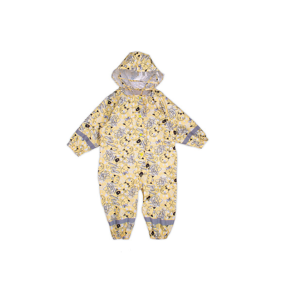 Удобный комбинезон свободного кроя прост в использовании, снабжен застежкой в виде молнии и резинками на штанинах и рукавах. Приятным бонусом является защита лица, закрепленная на капюшоне, из прозрачного гибкого пластика. Одежда бережно защитит ребенка от холода и дождя, создаст комфортные условия независимо от погоды. Ткань не препятствует естественному воздухообмену, она сохраняет тепло и не впитывает влагу, ее несложно очистить от грязи. Материал соответствует всем санитарным и гигиеническим нормам, что важно для здоровья ребенка.