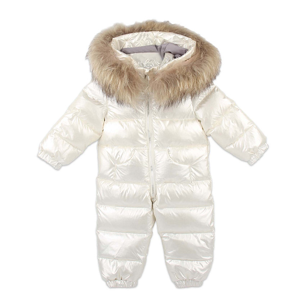 Комбинезон Lanson Kids зимний на молнии с меховой опушкой на капюшоне перламутрово-бежевый Lanson Kids зимний на молнии с меховой опушкой на капюшоне и рукавичками перламутрово-бежевый