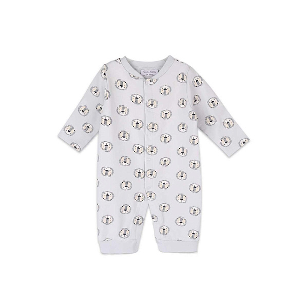 Комбинезон для малышей на манжете в голубом цвете с рисунком в виде очаровательных львиных мордочек. Одежда изготовлена из натуральной хлопковой ткани. Это мягкий материал, дающий коже дышать и выводящий лишнюю влагу. Комбинезон создан специально для самых маленьких. Удобная застежка на металлических кнопках расположена по всей длине изделия. С ее помощью можно за секунды снять или надеть костюм.