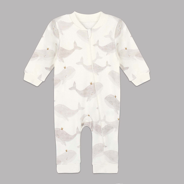 Комбинезон Bebetto в белом цвете с забавными принтами китов подойдет для мальчиков. Слип создан из натурального хлопка, что подходит для нежной детской кожи. Длинные рукава согреют в прохладные дни, а открытые ножки обеспечат свободу движений. Диагональная молния — практичное решение для родителей. Это упростит процесс переодевания и смены подгузника.