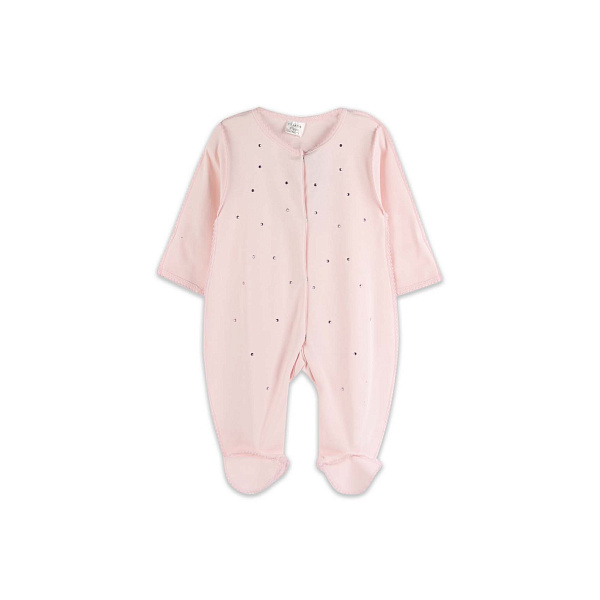 Очаровательный детский розовый комбинезон со стразами – это идеальный вариант для маленькой принцессы. Модель с закрытой ступней, сшита швами наружу, чтобы не причинять дискомфорт нежной коже ребенка. Застегивается на небольшие металлические пуговицы.