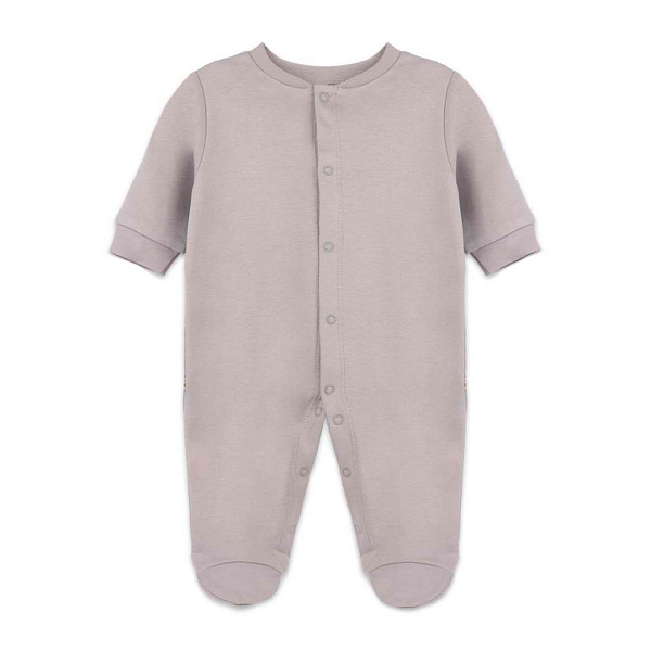 Комбинезон со ступней будет удобной первой одеждой для маленького крохи. Классический комбинезон универсального серого цвета подойдет как для мальчика, так и для девочки. В нем можно играть и спать дома в кроватке, а также отправиться на прогулку в коляске. Модель из 100% хлопковой ткани хорошо переносит многочисленные стирки и быстро сохнет.