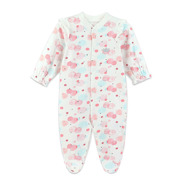 Комбинезон со ступней принт акварельные круги бело-розовый