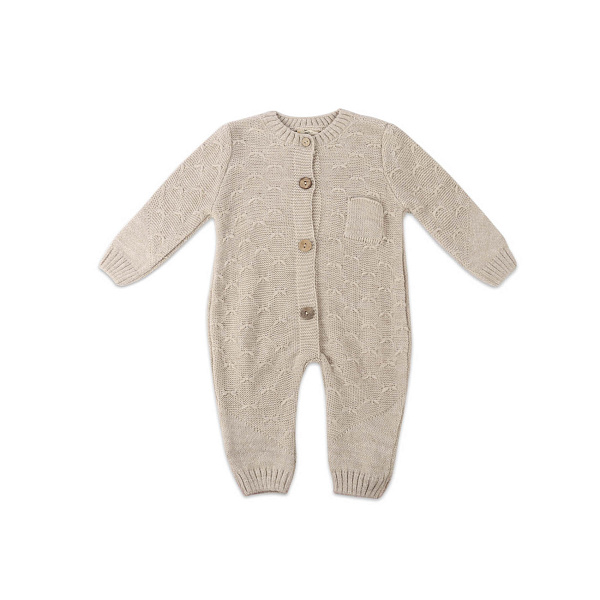 Комбинезон вязаный с узором бантики и с деревянными пуговицами бежевый