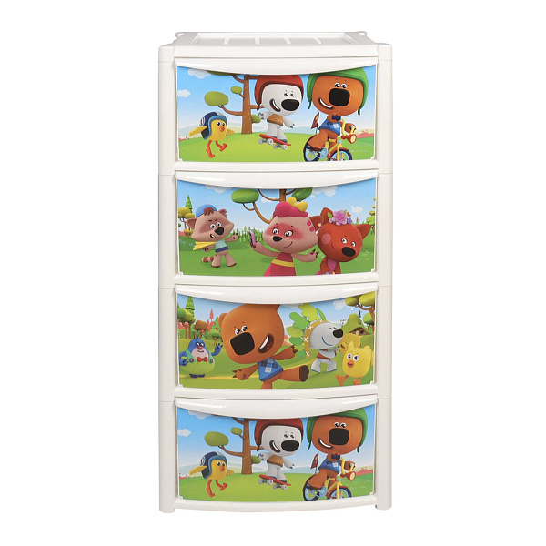 Комод для игрушек «Ми-ми-мишки» с четырьмя ящиками отличается ярким и привлекательным дизайном. Белый корпус украшен красочными картинками с персонажами популярного мультфильма, что приносит в детскую радость и игры. Такое оформление превращает организацию игрушек в занятие, которое понравится детям.