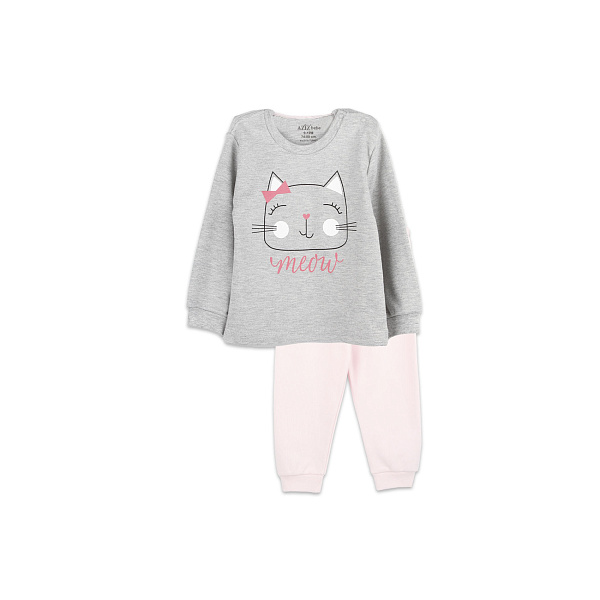 Комплект из лонгслива и штанишек разнообразит гардероб ребенка. В основе ткани использована комбинация хлопка и полиэстера, материалы хорошо пропускают воздух, сохраняют тепло и дарят комфорт телу в процессе носки. Свободный крой розовых штанов дополнен эластичными манжетами и резинкой на поясе, которая плотно фиксирует изделие на теле. Рукава лонгслива длинные с манжетами, вырез горловины круглый, декорирован застежками-кнопками. Перед кофты украшен кошачьей мордочкой и розовой надписью. Рекомендовано для детей ясельного возраста.