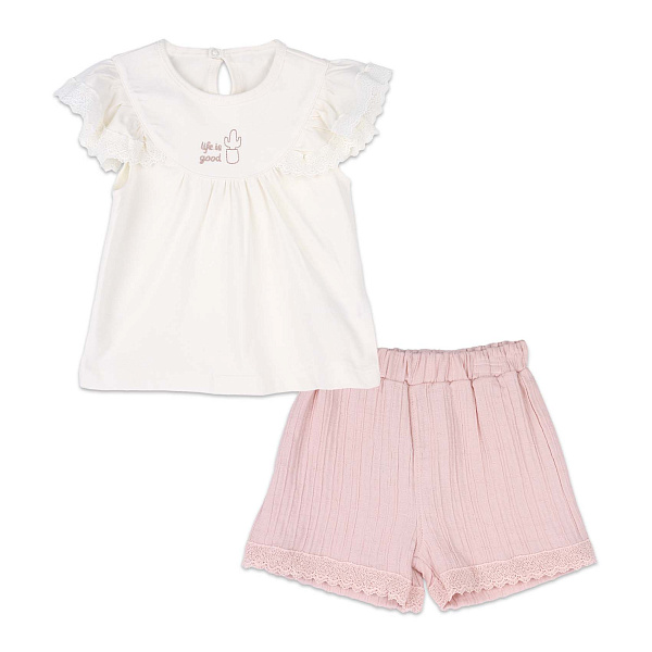 Комплект Bebetto футболка расклешённого кроя с нежными рюшами и легкие шорты