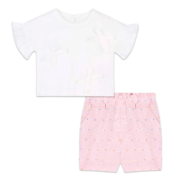 Комплект Bebetto футболка с декоративными бантиками и шорты в бело-розовой гамме