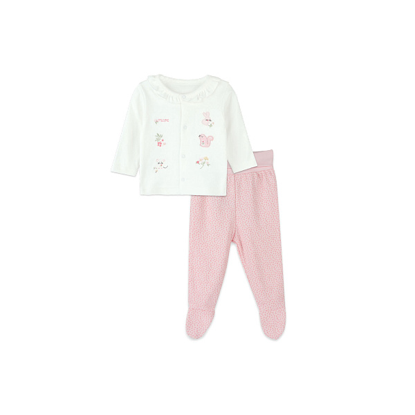 Ползунки – розовые с закрытой стопой, поддерживаются широкой резинкой.