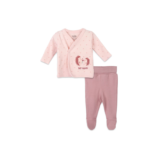 Комплект из распашонки и ползунков для девочки первого месяца жизни используется как универсальная одежда, которая может служить и пижамой, и домашним костюмом, и первым слоем при выходе на прогулку или в поликлинику.