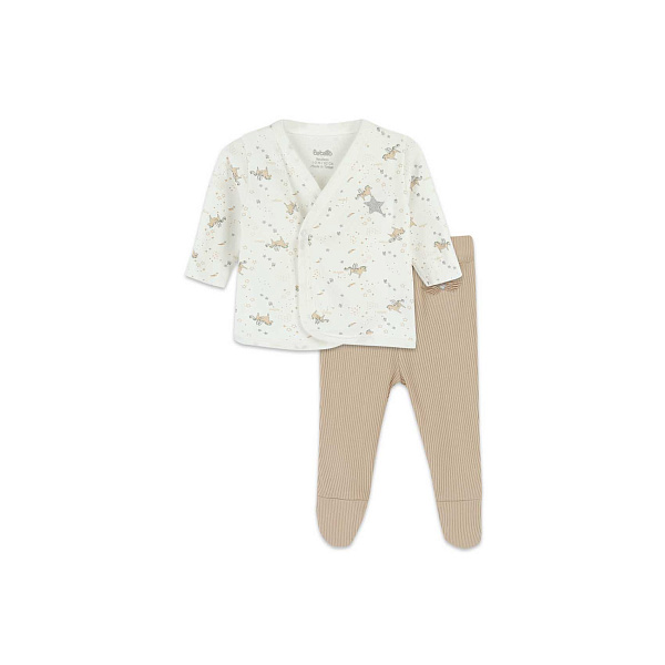 Комплект Bebetto распашонка и ползунки принт единороги со звездами бело-бежевый