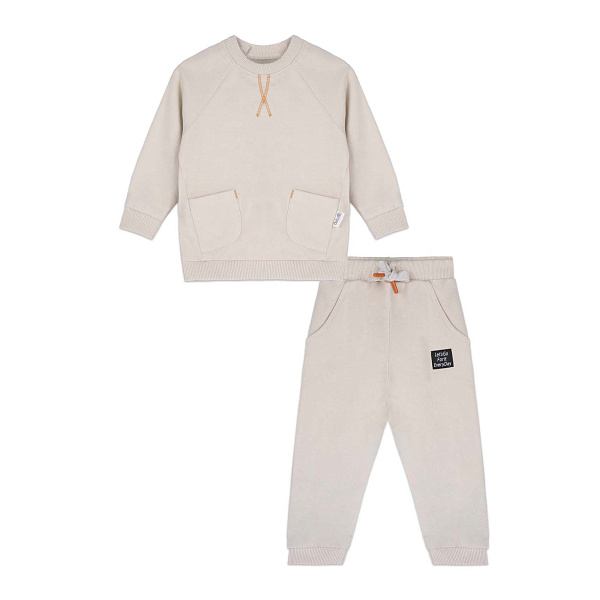 Легкая толстовка и брюки для мальчиков из 100% хлопка выполнены в универсальном бежевом цвете. Натуральный материал обеспечивает мягкость и комфорт, что особенно важно для детской одежды. Свободный крой и эластичные манжеты на рукавах и поясе обеспечивают удобную посадку.