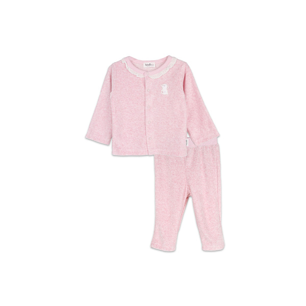 Детский костюм в нежном оттенке розового цвета состоит из двух предметов. Толстовка застегивается на пуговицы, поэтому ее будет удобно надевать. Брюки на резинке мягко фиксируются на поясе и не создадут дискомфорт. Комплект отличается свободной посадкой, что делает его универсальным для ребенка любой комплекции. Особенностью модели является рюша, обрамляющая горловину толстовки. В модном комплекте одежды ребенок будет комфортно себя чувствовать дома, на прогулке или в детском саду. Одежда не стесняет движений и не создаст ограничений для малыша в познании окружающего мира. в основе ткани использован натуральный хлопок и полиэстер. Рекомендовано для детей ясельного возраста.