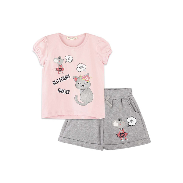 Комплект Best friends forever футболка и шорты с рисунком кошка и мышка розовый