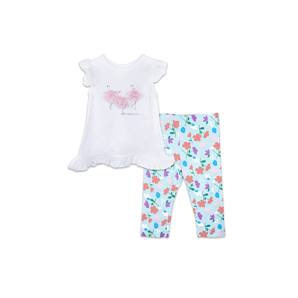 Комплект Bebetto футболка белая и лосины с цветочным принтом