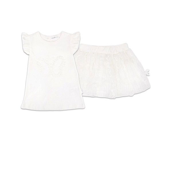 Порадовать маленькую модницу несложно при помощи нарядного костюма с пышной юбкой. В таком одеянии каждая девочка почувствует себя маленькой принцессой. Футболка из приятного на ощупь натурального хлопка чудесно пропускает воздух, впитывает влагу. Таким образом ребенок будет чувствовать себя комфортно даже в жаркий день. Оригинальный крой детского комплекта обеспечивает комфортную посадку. Такая одежда не мнется, чудесно переносит деликатную стирку, при этом долгое время сохраняет привлекательный внешний вид. Рекомендовано для детей ясельного возраста.