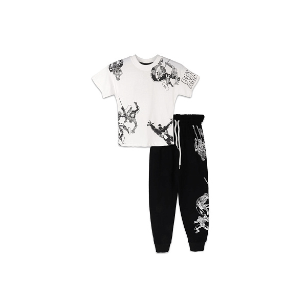 Комплект футболка и брюки с монохромным рисунком Человек-паук черно-белый
