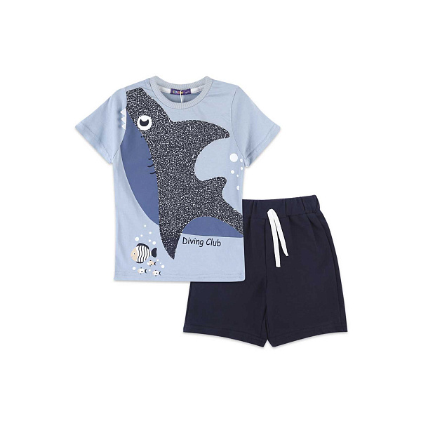 В жаркий летний день для прогулки на мальчика можно надеть оригинальный комплект из футболки с короткими втачными рукавами и шортами. Ткань — хлопчатобумажная, отличается хорошей гигроскопичностью. В таком комплекте не будет жарко даже в раскаленные летние дни.