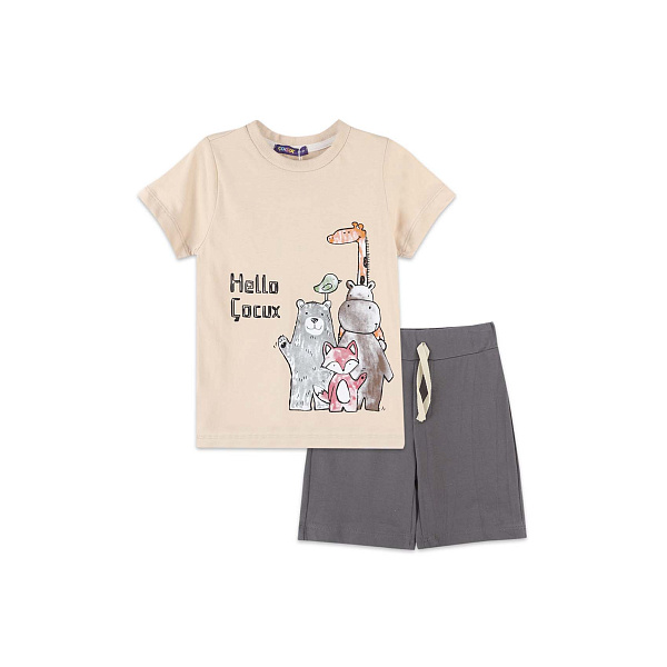 Комплект футболка и шорты с рисунком друзья-животные бежевый