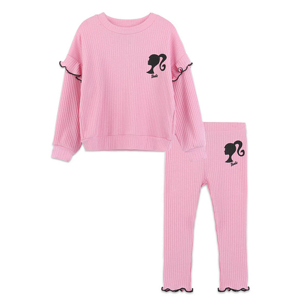 Комплект Lanson Kids Barbie толстовка и брюки с рисунком с рюшами розовые с черной каймой