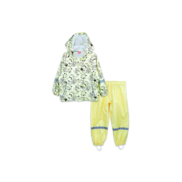Если ребенка нужно довести до садика или сходить с ним в магазин, а на улице дождь — есть надежный и проверенный способ защитить его и верхнюю одежду от брызг, грязи и промокания. Наденьте сверху водозащитный костюм из синтетической ткани полиэстра. Она не соприкасается с детской кожей, потому безопасна несмотря на искусственное происхождение. Легкая куртка-дождевик с вместительными карманами, рукавами на резинках и с глубоким капюшоном застегивается на прочные кнопки. Широкие штаны внизу собраны кулисками, чтобы фиксироваться на обуви. Светлый цвет материала легко отмывается от загрязнения после стирки в машинке или влажной губкой.