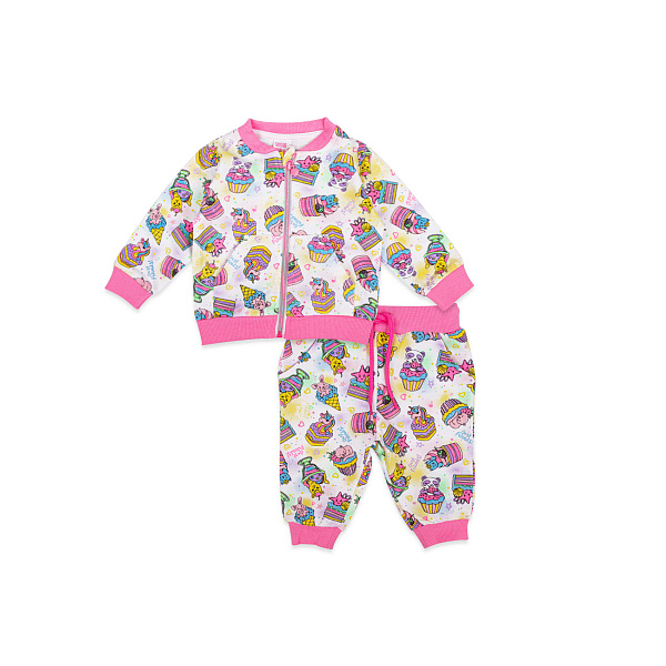 Комплект для девочки состоит из спортивных брюк и толстовки с длинным рукавом. Ткань на 100% состоит из хлопка. Поэтому одежда сохраняет тепло и не раздражает нежную кожу ребенка. Мягкие швы не давят и не натирают. Ширину обхвата брюк можно регулировать шнурком на поясе. Манжеты на брючинах мягко облегают ноги малыша. Застежка-молния на толстовке облегчает процесс одевания и раздевания. Верхний край молнии спрятан в кармашек, чтобы не прищемить кожу на шее ребенка. Тонкая молния-спираль не помешает малышу лежать на животике. Костюм можно носить в прохладную погоду летом или надевать под куртку в холодный сезон.