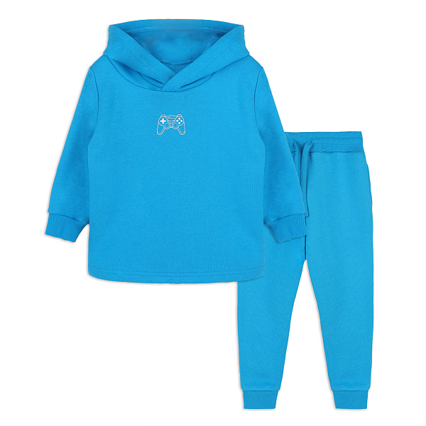 Комплект для мальчика: толстовка и брюки – это идеальный выбор для повседневной носки на каждый день. Изделия выполнены в ярком голубом цвете. Дизайн толстовки дополнен минималистичным принтом с игровым джойстиком.