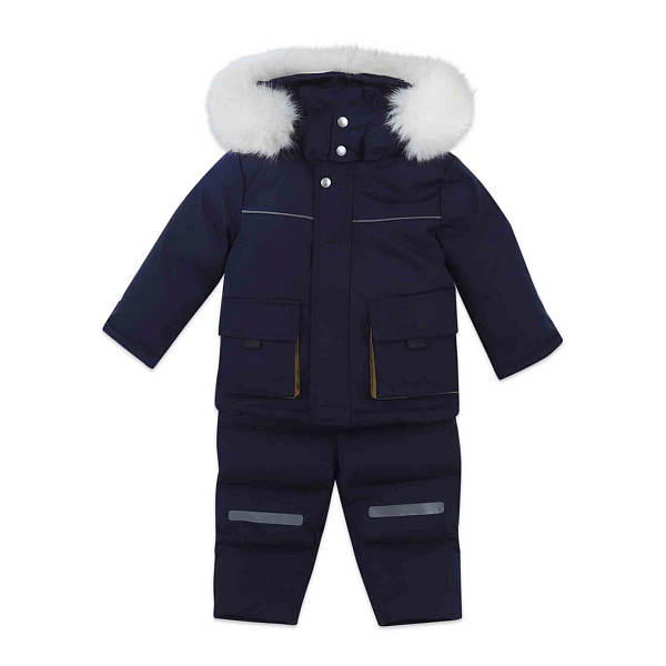 Комплект Lanson Kids зимний куртка и полукомбинезон с белой опушкой на капюшоне темно-синий