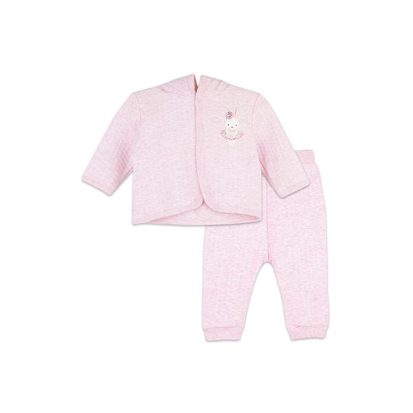В прохладную погоду лучшей вещью в гардеробе станет утепленный ясельный комплект. В набор входят свободного кроя штаны и оверсайз толстовка с капюшоном. Верх и подкладка пошиты из 100% натурального хлопка, в качестве утеплителя использован полиэстер. Такое сочетание обеспечивает естественный воздухообмен, мягкое прилегание к телу и комфорт в течение дня. Штанины дополнены широкими манжетами, а пояс на резинке позволяет плотно зафиксировать изделие на поясе, но не передавить живот. Свободного кроя кофта застегивается на кнопки, а глубокий капюшон с ушками не даст голове замерзнуть. Завершает дизайн нашивка кролика на кофте. Рекомендовано для детей ясельного возраста.