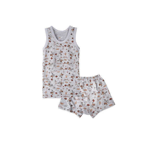Детский комплект белья порадует не только ребенка, но и заботливых родителей. В основе ткани использован натуральный хлопок – материал хорошо пропускает воздух, мягок и приятен к телу. Майка свободного кроя не сковывает движения, лямки широкие, вырез горловины овальный. Трусы выполнены в виде шортов, них шортов свободный. Верх изделия украшает эластичная резинка, она плотно фиксирует белье на поясе, но не сдавливает кожу. темный серый цвет с принтом мишек понравится ребенка и добавит разнообразие в гардероб. Рекомендовано для детей младшего возраста.