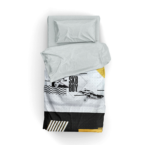 В набор входят наволочка (50х70), простыня (150х214) и пододеяльник (143х215). Размеры подойдут для стандартной кровати. Сочетание серого, черного, белого и желтого цветов будут эффектно смотреться в комнате подростка.